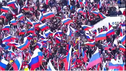 活动视频显示,人群大声欢呼,高呼“俄罗斯!”