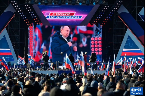 FX168财经报社(北美)讯 周五(3月18日),俄罗斯总统普京在一个挤满人的足球场前举行集会,为入侵乌克兰辩护,他向成千上万挥舞俄罗斯国旗的民众承诺,克里姆林宫的所有目标都将实现。