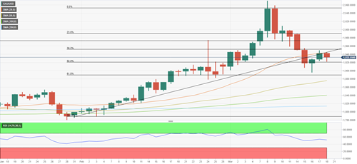 如果买家成功将金价拉回1950美元(38.2%斐波那契回档位)上方,那么下一个阻力位可能是1975美元(2月24日高点)和1990美元(23.6%斐波那契回档位)。