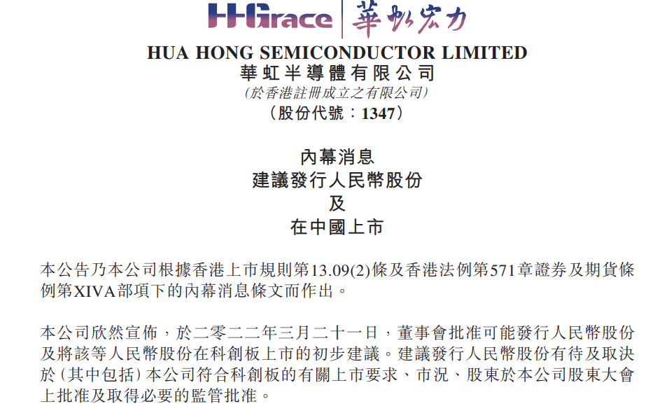 但值得关注的是,华虹半导体特别在公告中粗体列明:“股东及有意投资者务请留意,建议发行人民币股份的具体计划有待董事会及本公司股东大会进一步批准以及取得监管批准。因此,建议发行人民币股份可能会或可能不会实行。本公司股东及有意投资者应注意,并不保证建议发行人民币股份将会落实或可何时落实。”