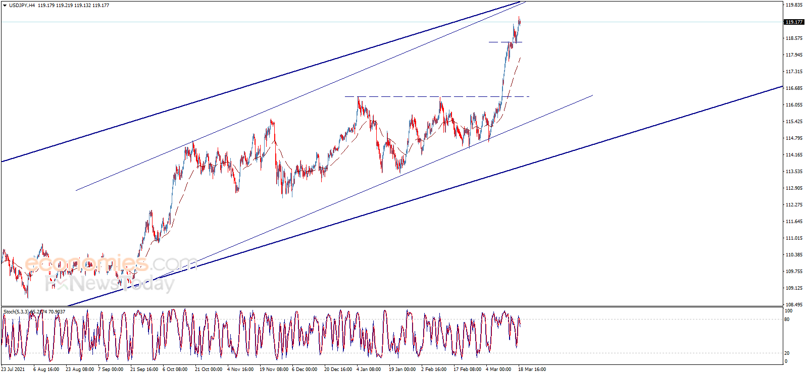 预计今日美元/日元交投将位于支撑位118.70以及阻力位119.90之间。