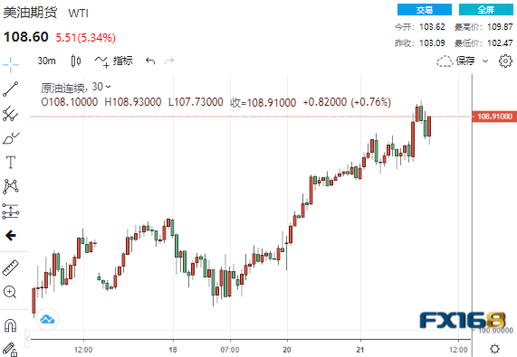(美油30分钟走势图,来源:FX168)