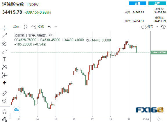 (道指30分钟走势图,来源:FX168)