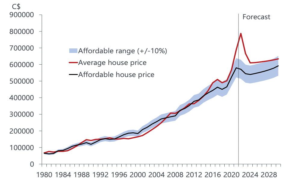 (加拿大住房负担能力指数,来源:牛津经济研究院)