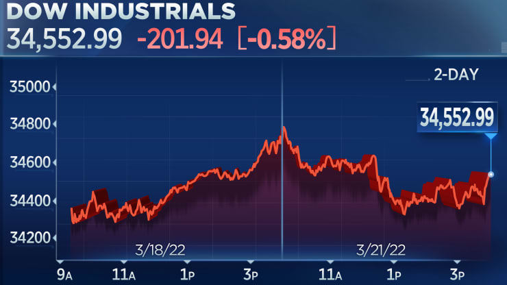 FX168财经报社(北美)讯 周一(3月21日),在美联储主席鲍威尔就通胀飙升发出警告并誓言采取强硬措施后,美国股市震荡下跌,主要股指均跌至当日低点。