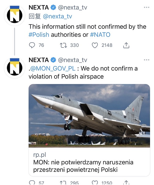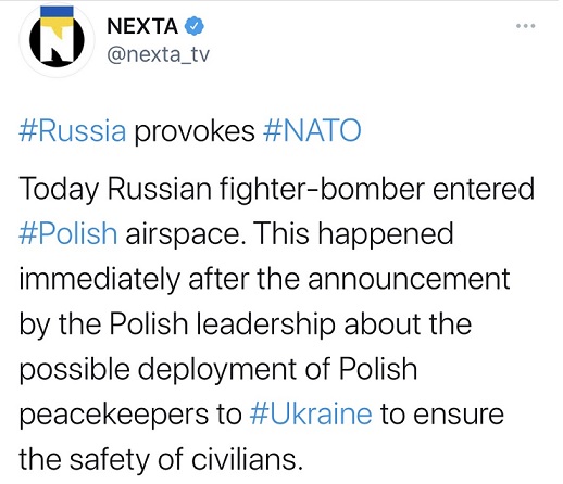 FX168财经报社(香港)讯 波兰副总理卡钦斯基(Jaroslaw Kaczynski)日前呼吁,北约或其他国际团体应派遣“国际维和特派团”在乌克兰展开行动,帮助乌克兰自我防卫。东欧最大媒体《NEXTA》3月21日晚间发文爆料称,俄罗斯战斗机“入侵”波兰领空。