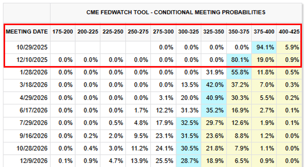 美联储最新会议纪要显示,多数官员认为通胀压力减弱、就业风险上升,支持年内进一步降息。这让市场对 10 月降息的预期维持在九成以上,也推升美股再创新高。