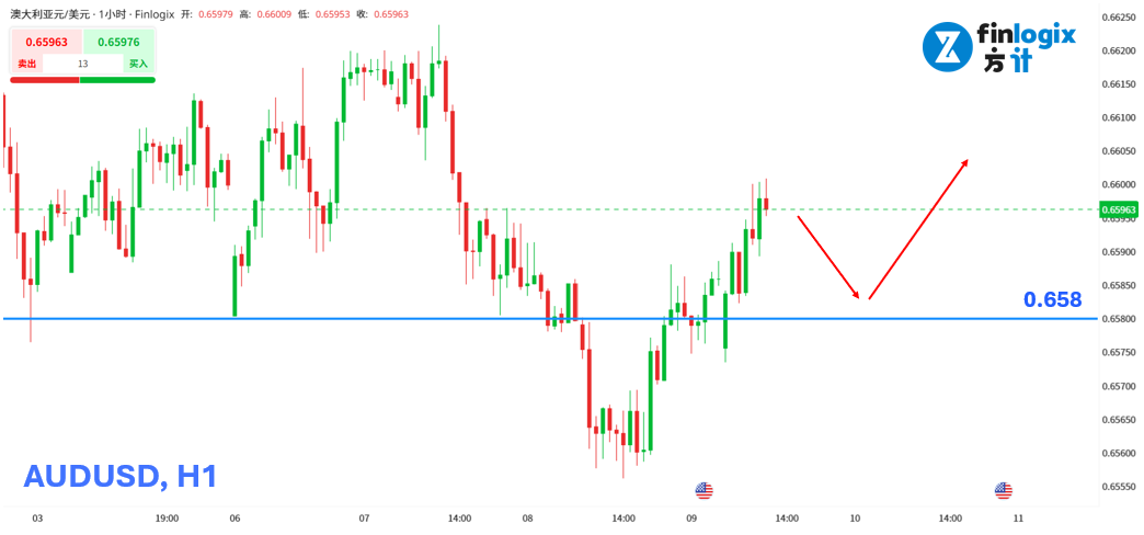 技术面:新西兰央行意外一次降息两码,导致纽元重挫,澳纽利差随之扩大,使澳元成为昨日表现最强劲的非美货币,今日走势有望延续强势。日內回踩0.658若能止稳,考虑偏多。