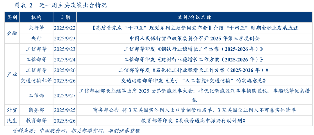 2、9月23日,工信部等印发《钢铁行业稳增长工作方案(2025-2026年)》