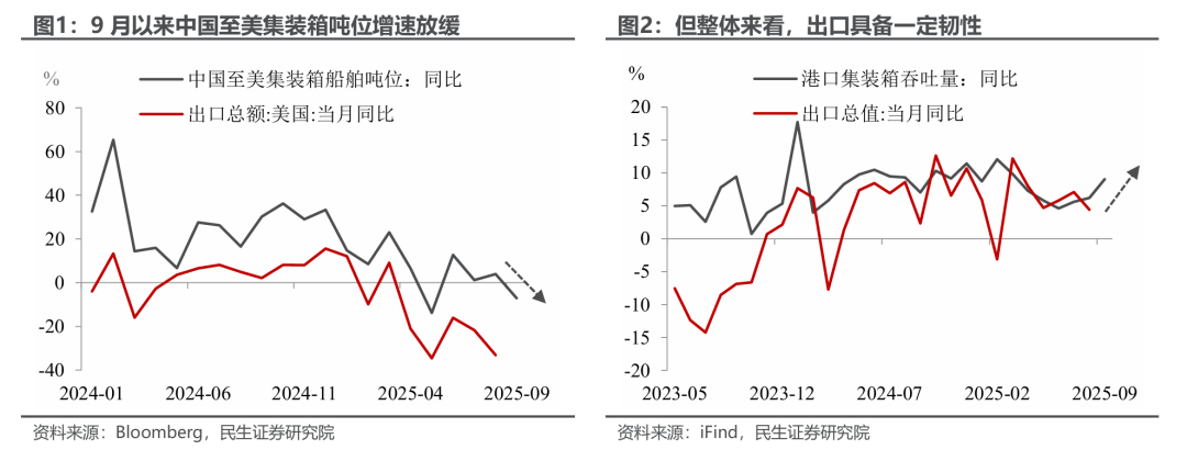 出口:逆风彰显韧性,非美需求构筑支撑。9月低基数将为出口形成天然缓冲,出口增速的韧性不宜过分低估。同时,尽管美国进口需求自9月起回落,我国至美的集装箱船舶吨位也显示9月对美出口增速可能再度放缓,但整体观察,9月我国港口集装箱吞吐量却在逆势抬升。这一反差既反映了非美经济体对我国出口的支撑作用,也凸显出我国贸易结构多元化进程的成效。