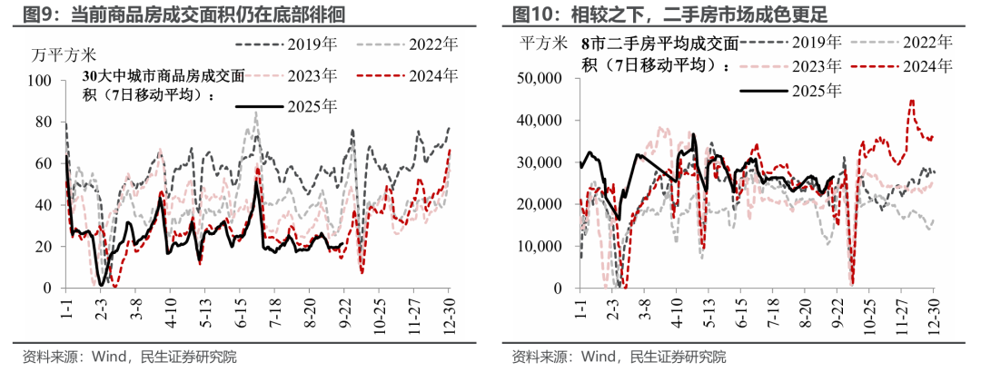 除了汽车,今年商品房“金九银十”的成色也略显不足。当前商品房成交面积仍在历史同期底部徘徊,“金九银十”开局略显平淡,房地产下行压力暂未完全缓解。值得注意的是,二手房成交面积仍具韧性,反映了房地产需求的结构变化。