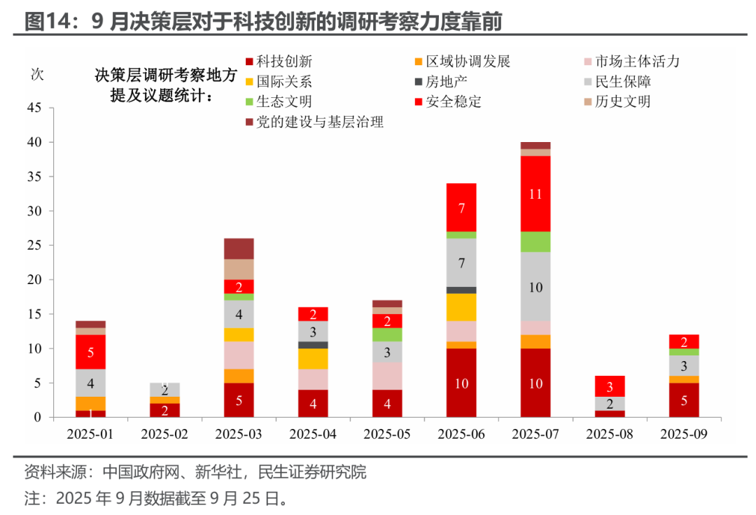 另一方面,随着聚焦“十五五”规划的四中全会召开在即,近期决策层对于科技创新的调研考察力度再度上升,更多支持新兴产业发展的举措值得期待。